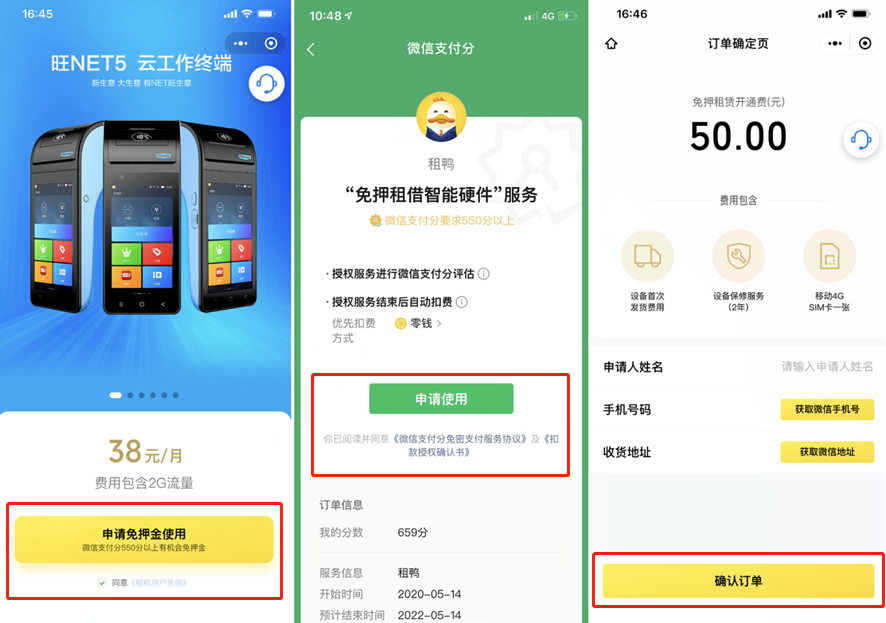 微信POS機信用免押系統(tǒng)是我們在2020年全新推出的一款提供免押租借智能硬件服務(wù)的系統(tǒng)。只要用戶的支付分在550分及以上,就可以通過微信進行線上租賃。