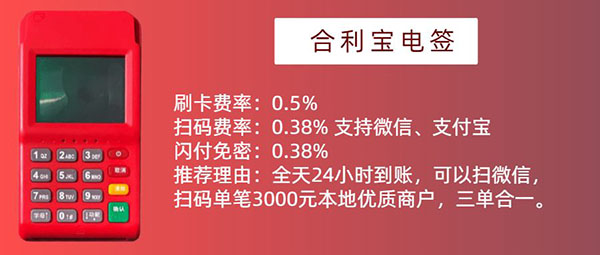 2.使用合寶pos機掃碼費率為0.38%,不過這個0.38%需要支付在1000元以內才是按照這個費率標準進行收取www.09847.com,超過的話就是按照正常的費率進行收取。