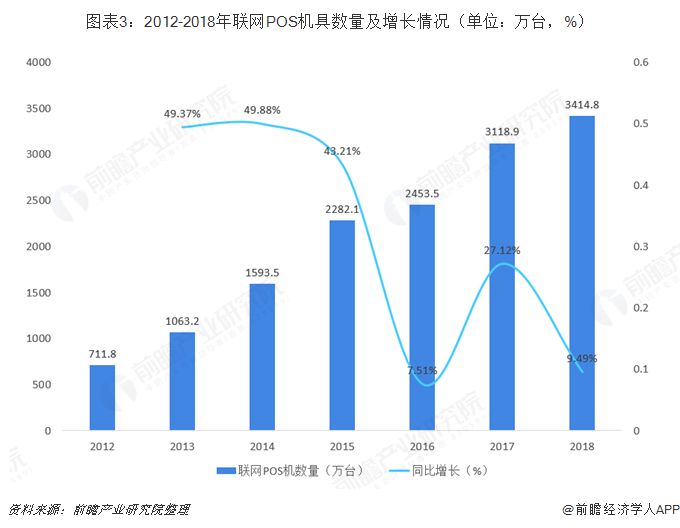 受理市場(chǎng)環(huán)境不斷完善。截至2018年末,我國聯(lián)網(wǎng)POS機(jī)具共有3414.82萬臺(tái),較上年增長295.96萬臺(tái),全國每萬人對(duì)應(yīng)的POS機(jī)具數(shù)量245.66臺(tái),同比增長8.91%,全國聯(lián)網(wǎng)POS機(jī)數(shù)和聯(lián)網(wǎng)商戶數(shù)的持續(xù)增長為智能POS收單發(fā)展提供了廣闊空間,智能POS對(duì)于第三方支付收單市場(chǎng)具有重要的業(yè)務(wù)升級(jí)作用。