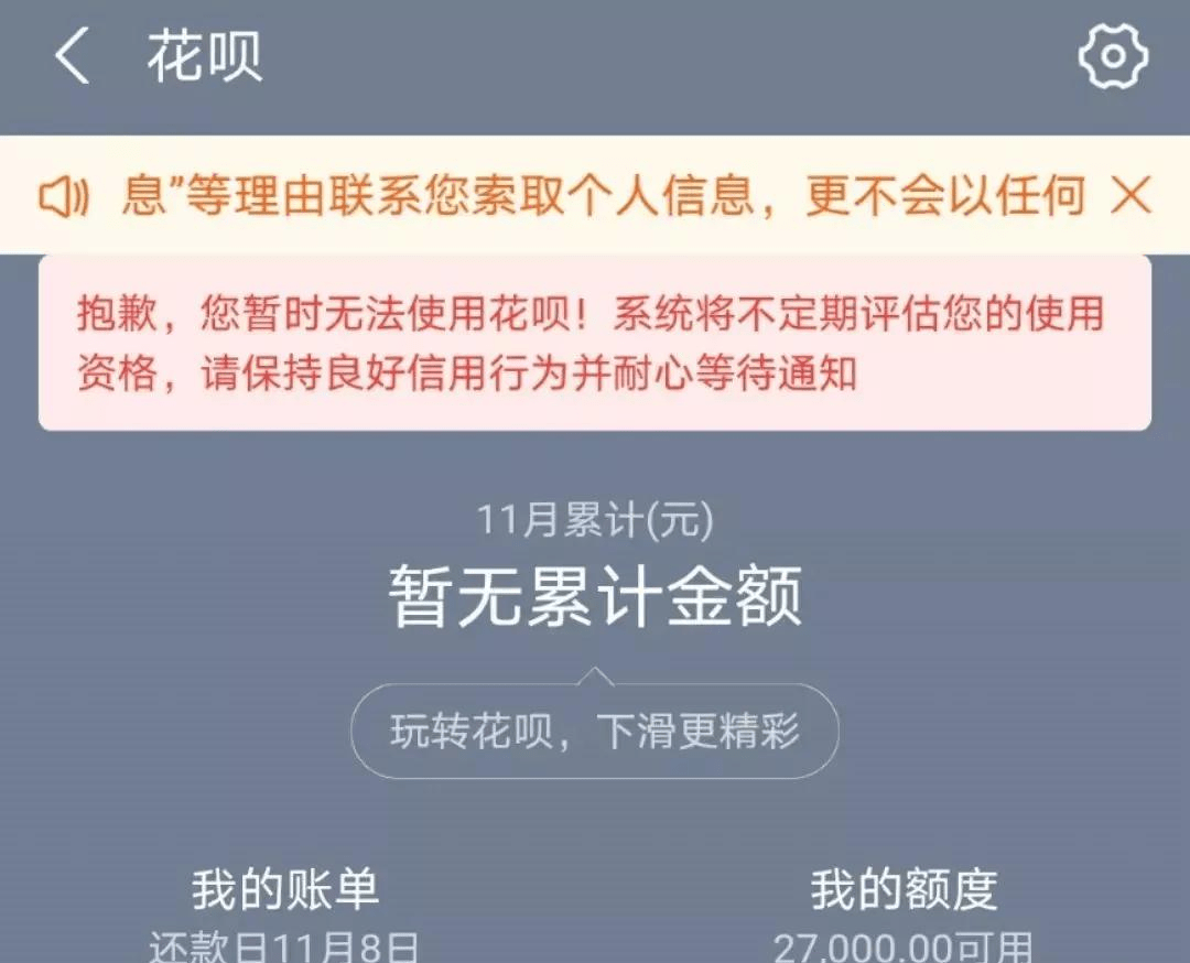 總之,有些伙伴的情況是花唄不能用,簡單來說,比如你在借唄借了大量資金,或者同時還在其他平臺存在大量的借款,系統(tǒng)就會對你的還款能力產(chǎn)生懷疑,為避免風(fēng)險才把額度降低,嚴重的還會關(guān)閉。